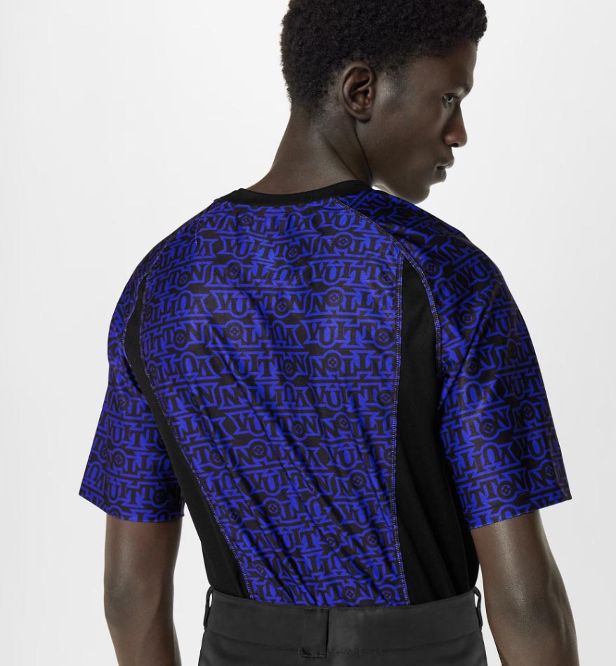 Crafted from breathable, high-tech jersey, this slim-fit t-shirt features a striking pattern of Vuitton signatures and Monogram colors.